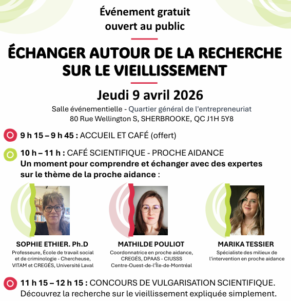 Dans le cadre des Journées scientifiques du RQRV, une matinée ouverte au grand public vous attend le 9 avril 2026 à Sherbrooke.